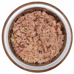 Carne muscular de pollo BIO, arroz BIO, hígado de pollo BIO, aceite de girasol BIO de 1º prensado, sal marina, carbonato cálcico.