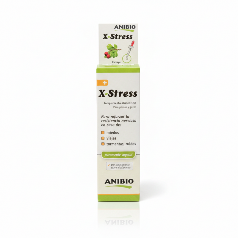 Compra Anibio XStress a base de plantas naturales, aporta las bases primas para controlar la propia respuesta natural del animal ante reacciones nerviosas.